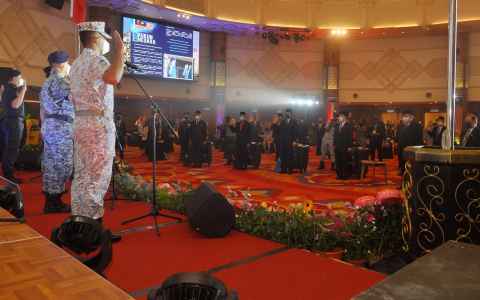 Sambutan norma baharu buat kali kedua ini berlangsung di Dewan Bankuasi Pusat Pentadbiran Negeri Sabah dalam suasana penuh kesederhanaan bagi mematuhi Prosedur Operasi Standard (SOP) yang telah ditetapkan berikutan penularan Covid-19.