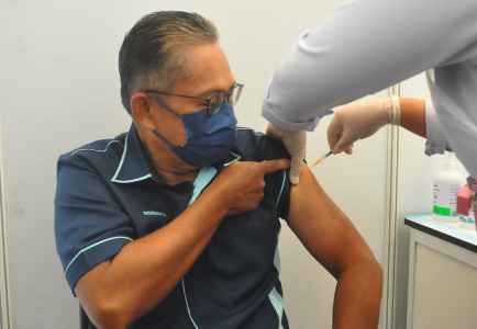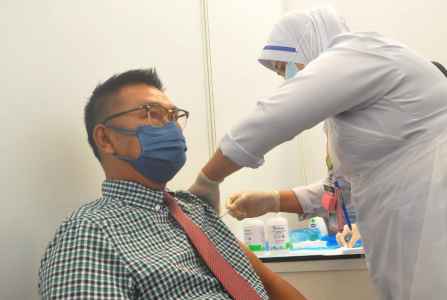 Turut menerima suntikan dos penggalak Setiausaha Kerajaan Negeri, YB Datuk Seri Panglima Sr. Haji Safar Untong, JP, dan Ketua Pengarah Perkhidmatan Awam Negeri, YBhg. Datuk (Datu) Rosmadi Datu Sulai, JP.
