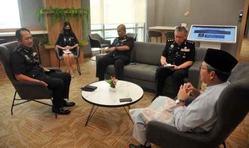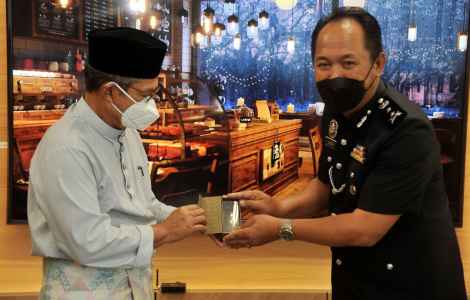 YBhg. Datuk (Datu) Rosmadi Datu Sulai, JP, Ketua Pengarah Perkhidmatan Awam Negeri menerima kunjungan hormat daripada Timbalan Pesuruhjaya Polis Sabah, YDh SAC Datuk Jauteh Dikun di Smart Library JPANS di aras 14, Menara Kinabalu pada 7 Januari 2022 (Jumaat).