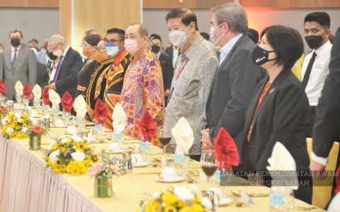 Selain menikmati pelbagai juadah makanan yang terhidang sepanjang majlis, tetamu yang hadir turut dihiburkan dengan persembahan nyanyian serta tarian berkonsepkan Sabahan daripada Artis Lembaga Kebudayaan Negeri Sabah.