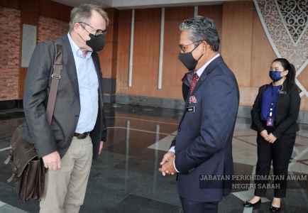 YBhg. Datuk (Datu) Rosmadi Datu Sulai, JP, Ketua Pengarah Perkhidmatan Awam Negeri, hadir ke Balai Seri Kinabalu, Lapangan Terbang Antarabangsa Kota Kinabalu (LTAKK) pada petang kelmarin bagi mengucap selamat jalan kepada duta-duta negara luar yang telah menyertai Sabah International and Business Economic Summit (SIBES) 2022.
