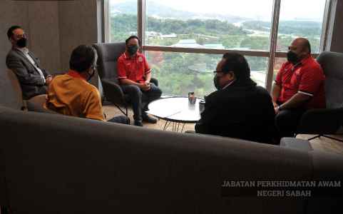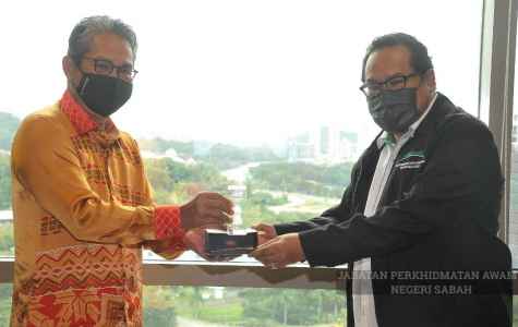 YBhg. Datuk (Datu) Rosmadi Datu Sulai, JP, Ketua Pengarah Perkhidmatan Awam Negeri menerima kunjungan hormat dari Pertubuhan Profesional Tanah Malaysia (PERTAMA) di Smart Library, Aras 14, Menara Kinabalu, pada 20 Januari 2022 (Khamis).