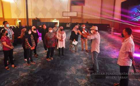 YBhg. Datuk (Datu) Rosmadi Datu Sulai, JP, Ketua Pengarah Perkhidmatan Awam Negeri Sabah hadir sama meninjau persiapan pada lawatan berkenaan.