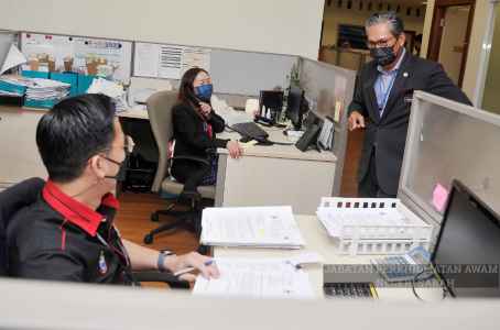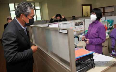 Pada masa yang sama, YBhg. Datuk sempat melawat Unit Fail di aras 12 dan meninjau sistem kad rujukan lama kakitangan kerajaan negeri, sekaligus beramah mesra dengan kakitangan unit tersebut.