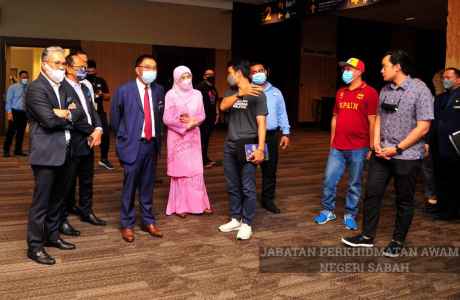 Seusai taklimat, YB Datuk Seri Panglima Setiausaha Kerajaan Negeri dan YBhg. Datuk KPPAN turut mengadakan lawatan tapak program berkenaan di Pusat Konvensyen Antarabangsa Sabah (SICC).