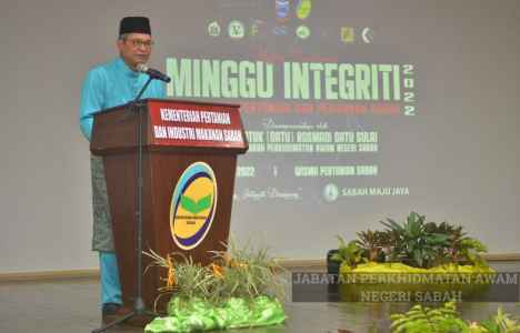 YBhg. Datuk (Datu) Rosmadi Datu Sulai, JP, Ketua Pengarah Perkhidmatan Awam Negeri telah merasmikan Majlis Penutupan Minggu Integriti Kementerian Pertanian dan Perikanan Sabah pada pagi Jumaat di Dewan Serbaguna Wisma Pertanian Sabah.