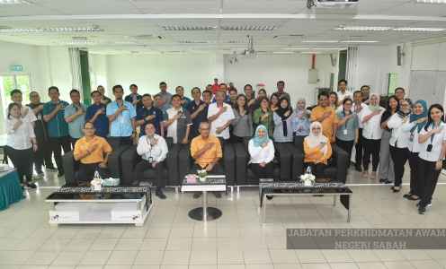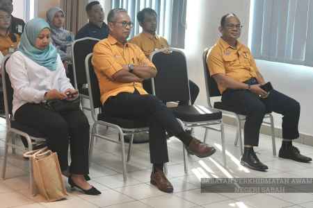Turut hadir YBrs. Encik Ramlee bin Kariah, Timbalan Ketua Pengarah (Perkhidmatan) dan Puan Rosnih binti Othman, Pengarah Sekretariat Sabah Maju Jaya.