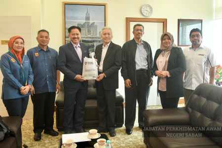 YBhg. Datuk Zainudin Aman, Ketua Pengarah Perkhidmatan Awam Negeri telah menerima kunjungan hormat dari delegasi Kolej Teknologi Yayasan Sabah bersama rakan strategik KTYS, DRB-HICOM University of Automotive Malaysia (DHU) di pejabat Direktorat, Jabatan Perkhidmatan Awam Negeri, Aras 14, Menara Kinabalu, hari ini.