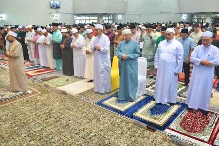 Solat diimamkan oleh Ustaz Suhaidi bin Kuanting, Imam Besar Masjid Negeri manakala khutbah bertajuk ‘Azam Lakukan Perubahan Capai Kemajuan’ disampaikan oleh YBhg. Datuk Mufti.