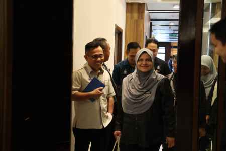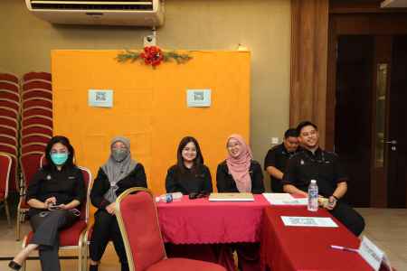 Turut hadir, Encik Rozhan Zul Azri Talikop, Pengarah Bahagian Saraan dan Pencen, Puan Aidah Hj Awang, Pengarah Bahagian Perkhidmatan Awam, Puan Nekmah binti Abdullah, Pengarah Bahagian Pembangunan Organisasi dan Puan Maznah binti Maun, Ketua Penolong Pengarah BPA.