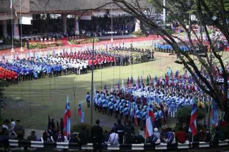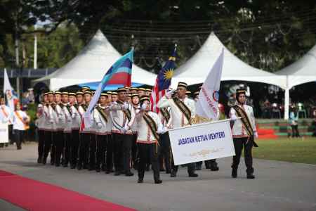Upacara dimulakan dengan Istiadat Perbarisan yang diadakan di Padang Merdeka seawal 7 pagi yang membabitkan 2,788 peserta perbarisan daripada 82 buah kontinjen terdiri dari pasukan keselamatan termasuk polis dan Angkatan Tentera Malaysia (ATM), sektor awam dan swasta, badan bukan kerajaan (NGO) serta pelajar. Tembakan meriam sebanyak 17 das dari Rejimen Ke-6 Artileri DiRaja turut dilaksanakan semasa TYT Tun memeriksa barisan Kawalan Kehormatan Utama Batalion ke-22 Rejimen Askar Melayu Diraja.